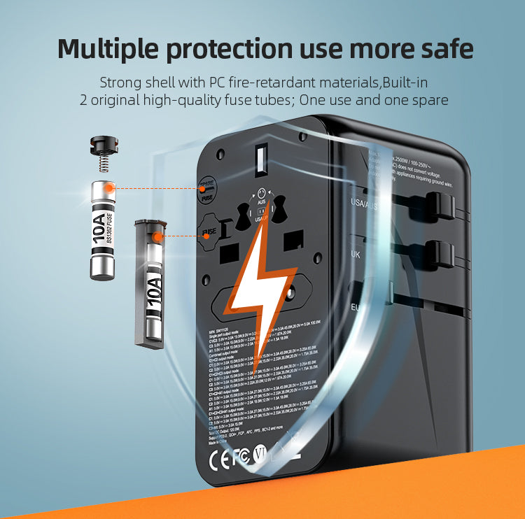 This 120W travel adapter is the perfect power solution for global professionals. Equipped with three USB-C ports and one USB-A port, it delivers fast, reliable charging for laptops, tablets, phones, and other devices. Powered by GaN III technology, it offers efficient performance with reduced heat and maximum speed. Built-in safety features provide stable, dependable charging anywhere you go. Compatible with outlets in over 200 countries, this compact adapter is ideal for business trips, travel, and content creation on the move.