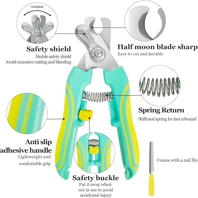 This professional pet nail clipper is designed for safe, easy, and comfortable grooming. Its sharp stainless steel blades deliver clean, precise cuts, while the built-in safety guard helps prevent over-cutting. The ergonomic handle provides a secure grip, making nail trimming simple for pets of all sizes. It also includes a nail file to smooth rough edges for a polished finish. A reliable, user-friendly grooming tool every pet owner should have.
