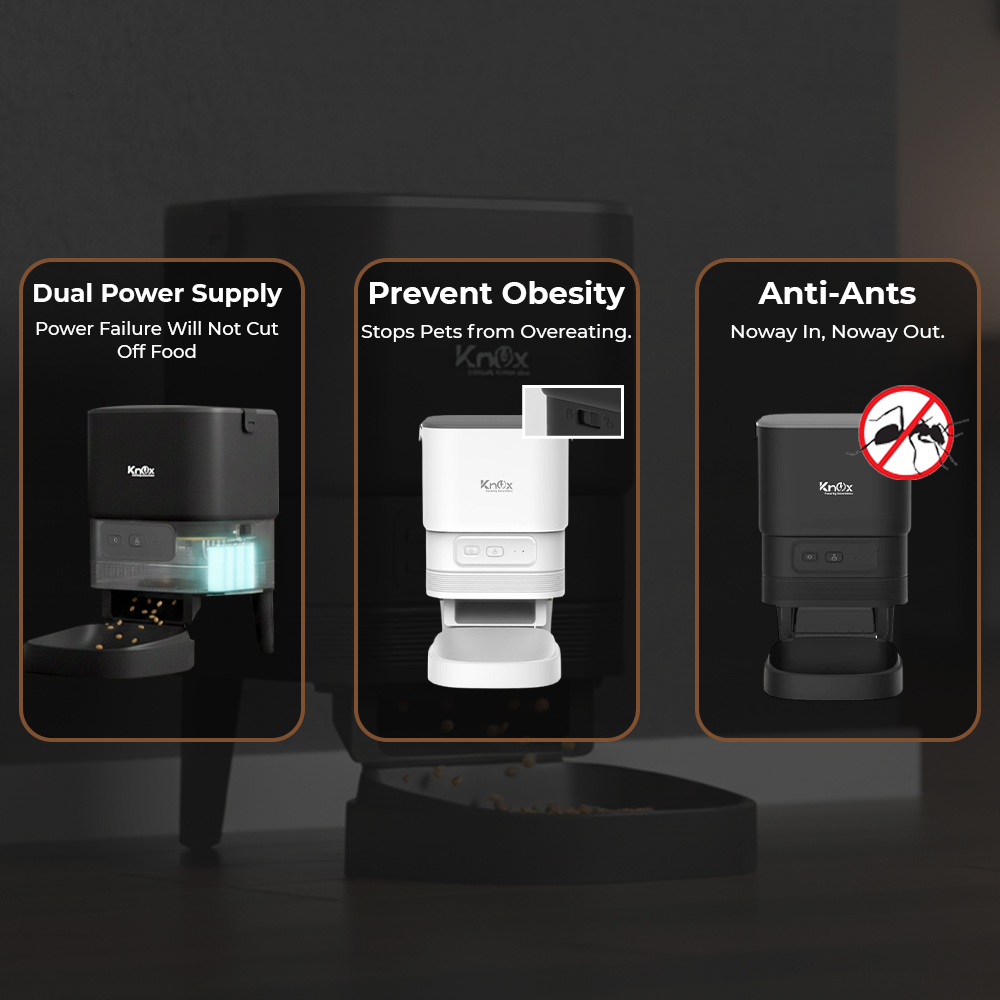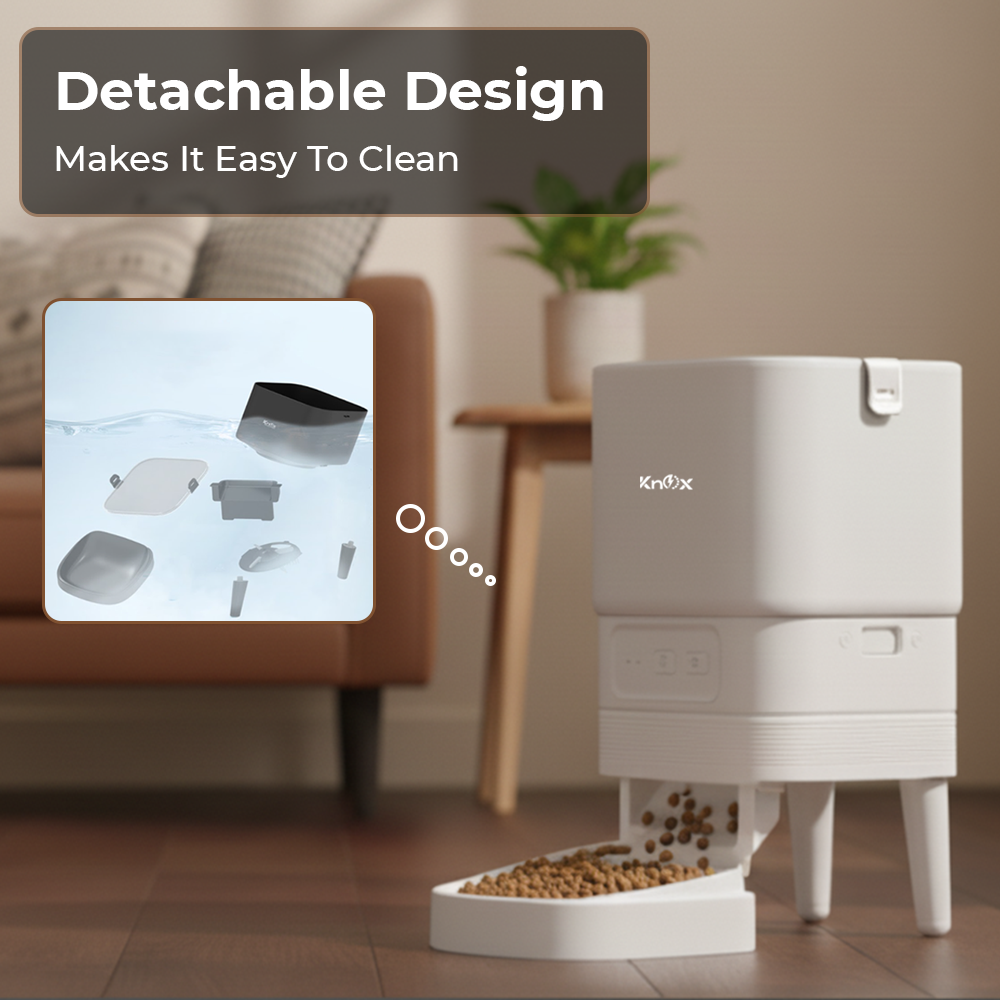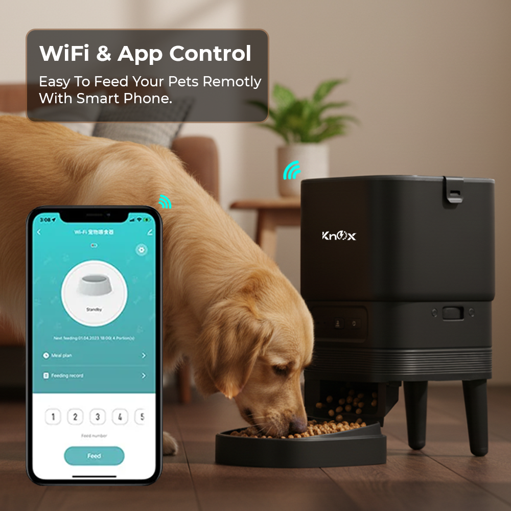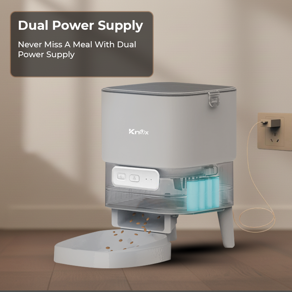 The Knox Powering Generations Automatic Pet Feeder makes sure your pets are always fed on time. Its 4L food capacity allows up to six programmable daily meals with fully customizable portions. With built-in WiFi, you can manage feeding schedules directly from your smartphone, while its freshness-preserving design keeps food safe for days. Smart, portable, and reliable, it’s the perfect solution for busy pet owners or homes with multiple pets.