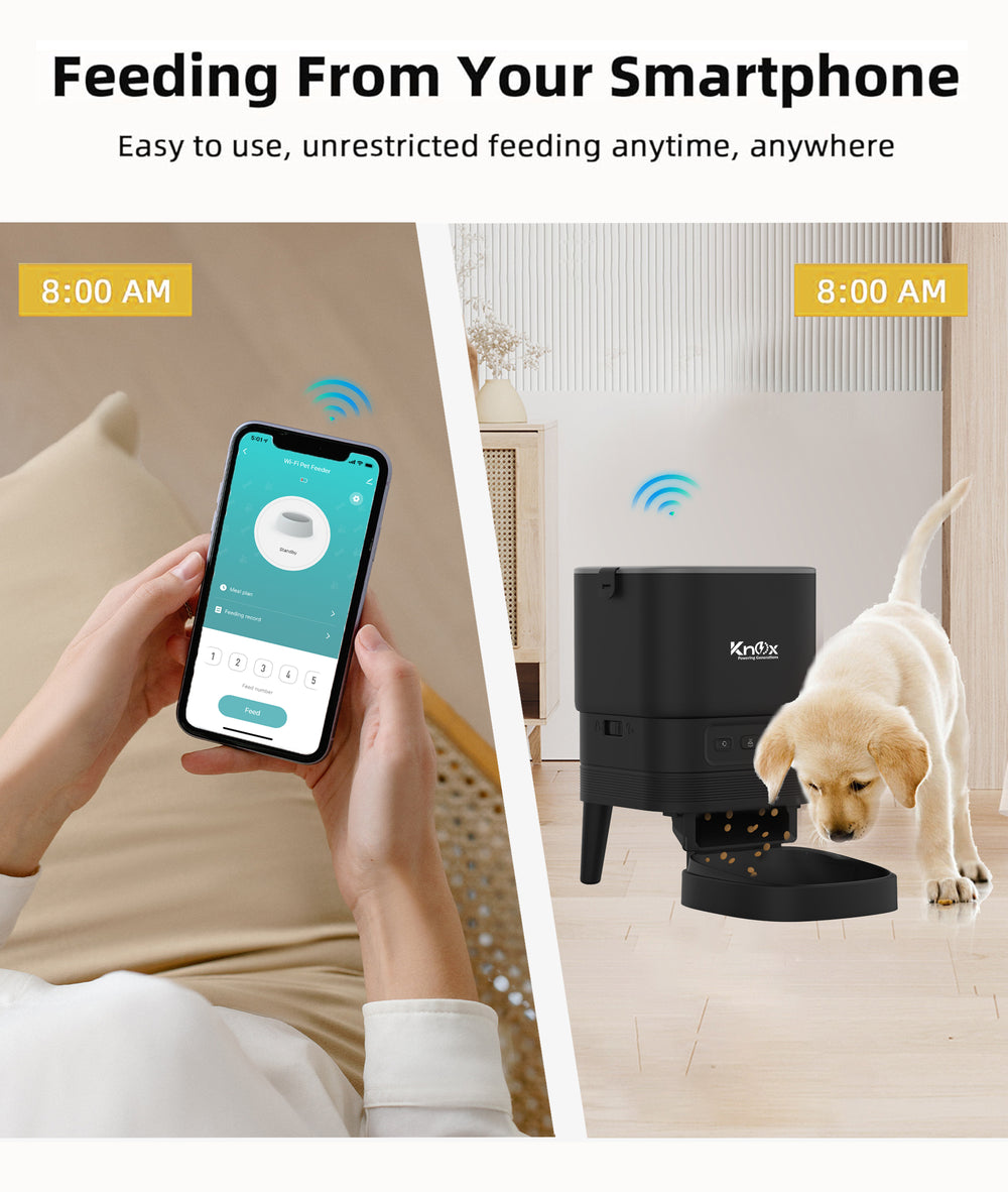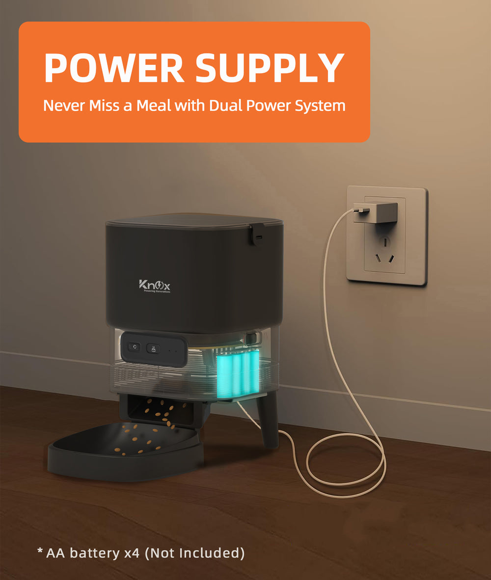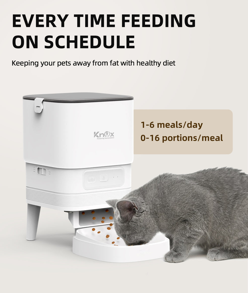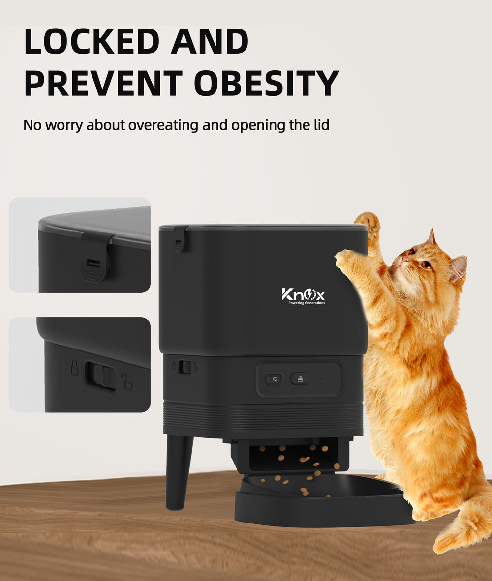 Knox Powering Generations Automatic Pet Feeder ensures your pets never miss a meal. With a 4L storage capacity, it supports up to 6 programmable feedings daily with customizable portions. The WiFi-enabled design lets you control everything from your smartphone, while built-in freshness protection keeps food safe for days. A smart, portable, and reliable choice for multi-pet households or busy owners.