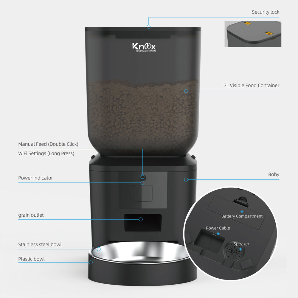 Keep your pets on a healthy routine with the Knox Smart 7L Automatic Pet Feeder. Schedule precise meals with portion control, all managed easily via WiFi and smartphone app. A rechargeable battery, freshness-preserving technology, and multiple alarm settings make it reliable for daily use. Designed for both cats and dogs, it’s a safe, hygienic, and hassle-free feeding solution.